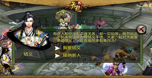 各个工作和所长得以彼此补偿,实力强大既是友谊的鉴证,也是团队能力平衡的最好展示。而且结义系统不分性别,男女皆可成形;已经结过婚的夫妻的二人。