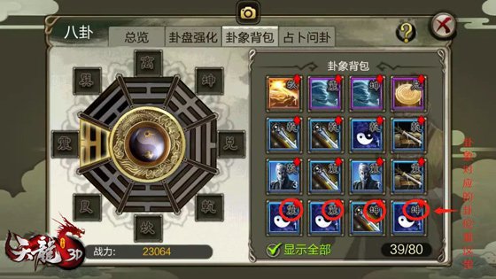 八卦首要分為卦位和卦象兩部分。在【八卦】→【卦盤強化】分頁能夠看到卦位,強化卦位能取得特點和战力的提高,卦位強化到必定等級時分,也能提高本位置的卦象特點。      八卦盤中總共有八個卦位,強化每個卦位時也會提高卦位對應的根底特點和佩帶在本卦位卦象的特點。間單來說就是:卦位強化等級越高,卦位根底特點加的越多,佩帶卦象後卦象的特點越高。